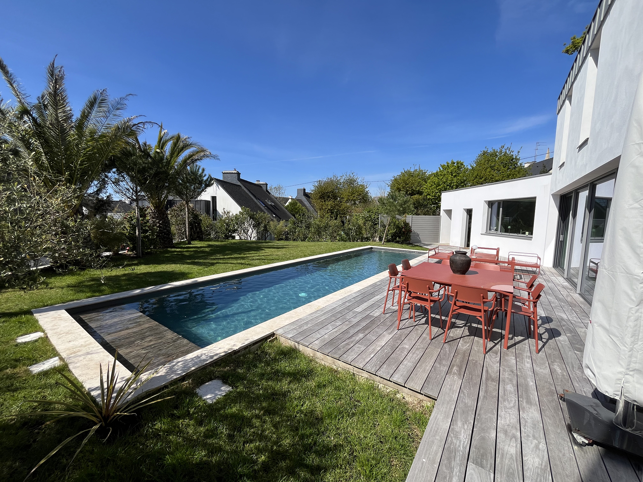Notre équipe de professionnels qualifiés vous accompagne à chaque étape de votre projet, de la conception à la réalisation, en passant par l’entretien et la rénovation. Nous proposons une large gamme de piscines, des modèles classiques aux piscines à débordement, en passant par les piscines naturelles. Chacune de nos créations est unique et conçue pour s’intégrer harmonieusement dans votre environnement. En choisissant Piscines Bretagne Sud, vous optez pour des matériaux de première qualité et des technologies de pointe, assurant des résultats à la hauteur de vos attentes.